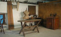 Altro ambiente legato ai lavori che si conducevano nella casa era la stanza per cucire e stirare o anche laboratorio di sartoria, con i vari ferri da stiro a carbone e a piastra, il piano di legno per stirare e una serie di macchine da cucire a pedale e manovella. Nella bacheca sono invece visibili alcune suppellettili e materiale d'uso della sarta.